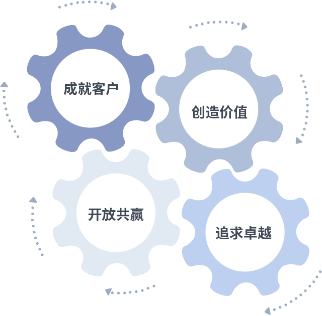 成就客户是一切决策的出发点,创造价值是衡量所有工作的标准,追求卓越是球速体育 - 极速覆盖全球热门赛事做事做人的态度,开放共赢是球速体育 - 极速覆盖全球热门赛事的格局也是最终的结果。价值观的齿轮环环相扣,推动着组织里的每个人不断向前。